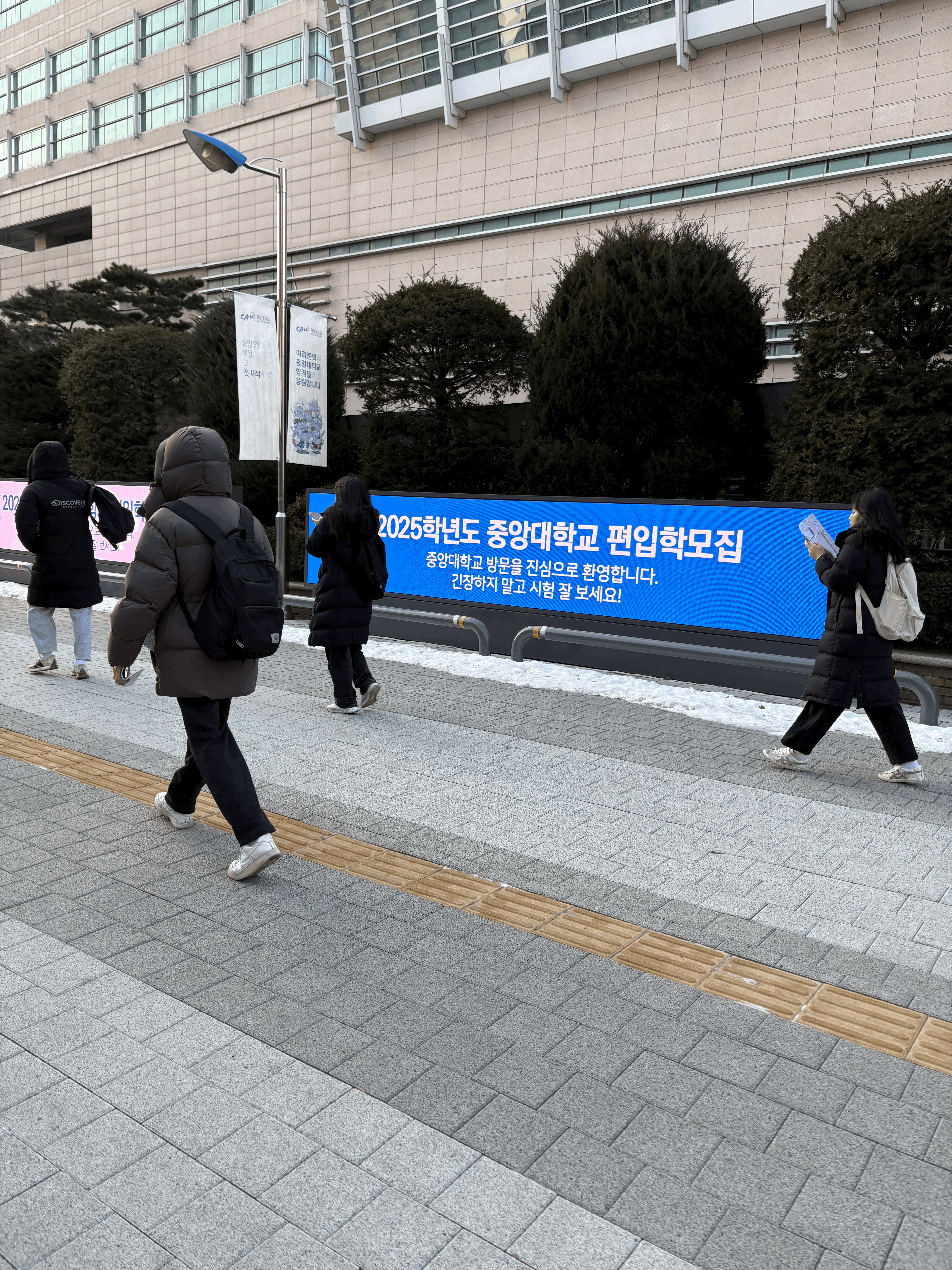 중앙대는 후문으로 들어가자마자 전자간판에 저렇게 편입생 환영문구를 엄청 띄워주더라고요